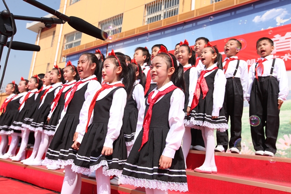 刘彤校长为活动做了精彩致辞,对嘉宾和家长的到来表示感谢,相信有了各位家长,各位来宾,各位领导和艺术家鼎力相助,同学们的小手一定会扬的更高!他们的声音会更加洪量!他们的眼睛里会更多了一些自信!优秀少先队员代表为来宾们献上鲜艳的红领巾。