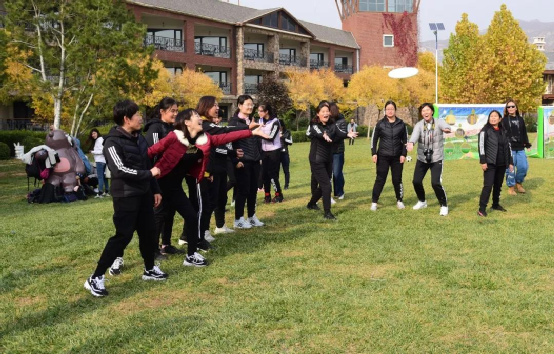 草地上,活动活动筋骨,抖擞抖擞精神。扔扔飞盘、踢踢足球,你传给我,我递给你,快乐的氛围在空气中弥漫。