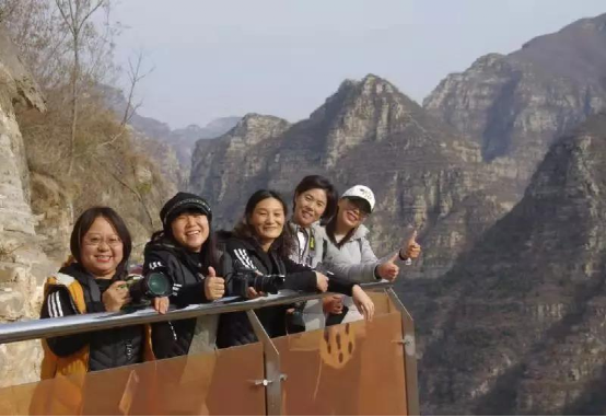 眼望着层林尽染的群山,脚踏着峭壁之上的玻璃栈道,大家三五成群,感受着大自然的瑰丽与魅力!